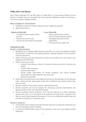 Skim Peduli Kesihatan to targeted group of B40 age 40 years & above and who have registered under the Bantuan Sara Hidup (BSH) benefit under Peka B40.